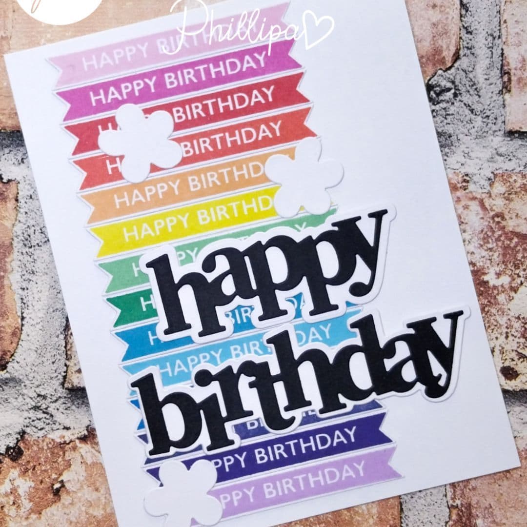 Comprising: 13 individual stamps featuring fabulous Sentiment Banners in 2 different sizes. Large Sentiments: Happy Birthday, Thinking of You, Thank You, With Sympathy, Best Wishes, Enjoy your Special Day, Just wanted to say...