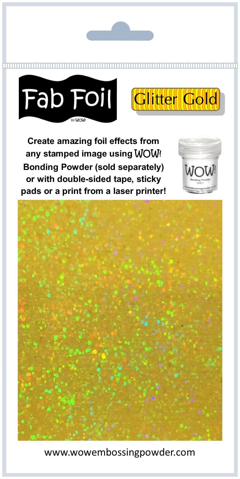 For best results, use with WOW!Bonding Powder (sold separately). Use in the same way as an embossing powder, but give it a little longer with the heat, once all molten, immediately place the foil on, colour side up, give it a rub (careful as it can be hot) to adhere it and then leave it to cool, once completely cool peel off.